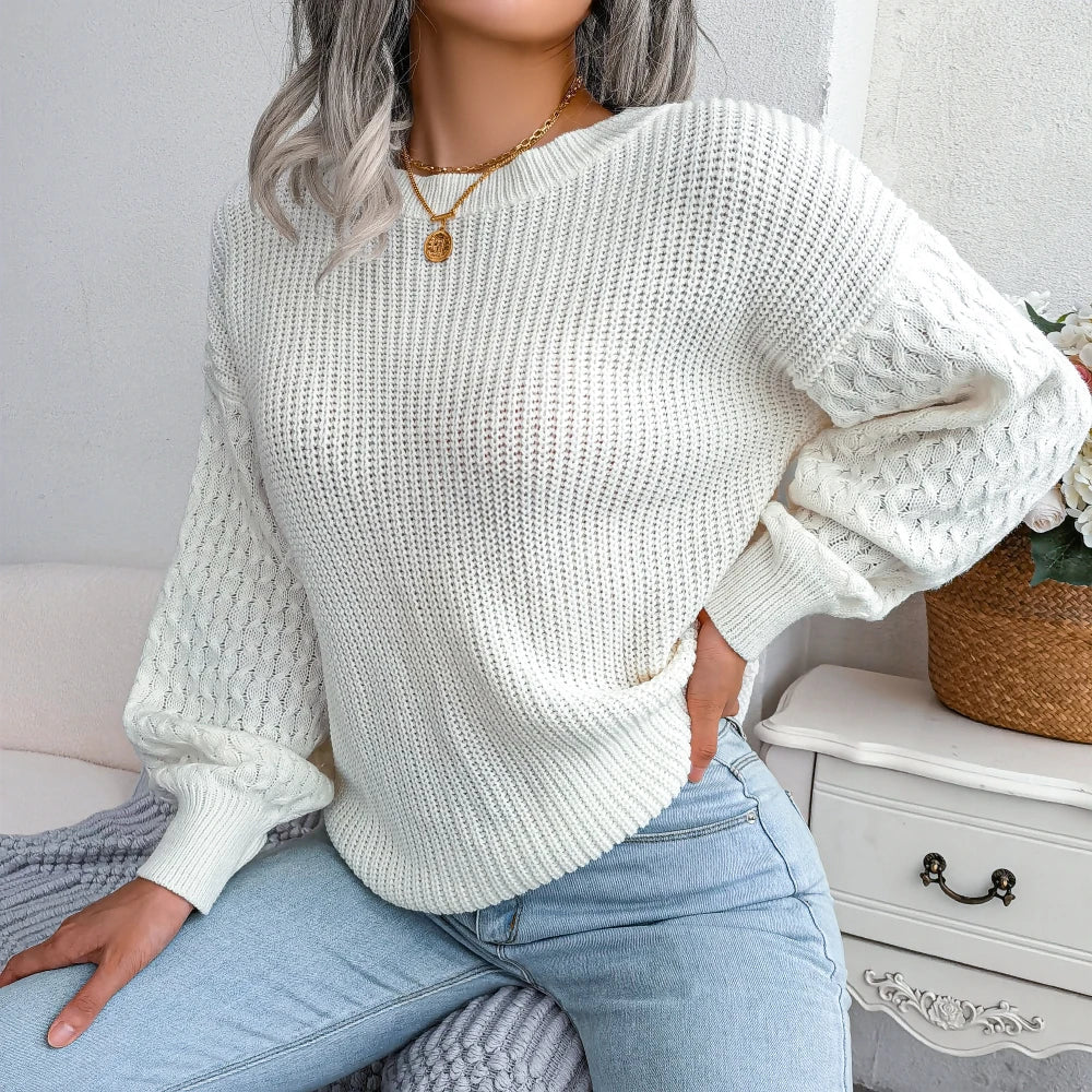 Novo Pulôver Feminino com Manga Trabalhada – Elegância e Conforto para o Seu Inverno!
