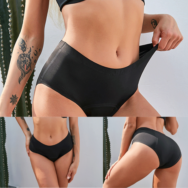 A calcinha antivazamento conta com uma tecnologia avançada de absorção de liquido, possui 3 camadas de alta qualidade e à prova de vazamento; Tecido super macio e respirável, tem uma ação antisséptica e anti-odor, neutralizando o odor e permitindo a transpiração da pele, garantindo muito mais conforto e segurança em qualquer situação.