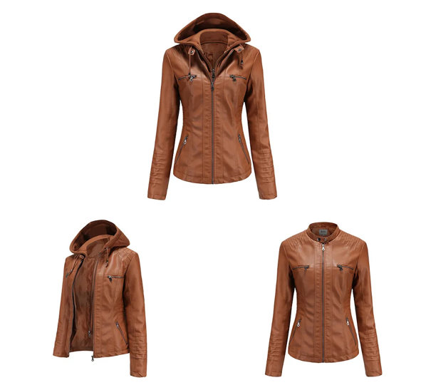 1. Design Elegante: Nosso modelo combina a clássica elegância do couro com a modernidade de um capuz, criando uma peça versátil que se adapta a qualquer look. Seja para um encontro casual ou uma saída à noite, você estará sempre deslumbrante.